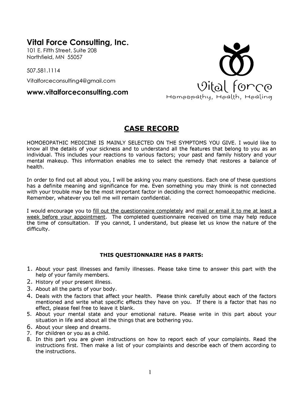 I would encourage you to fill out the questionnaire completely and mail it to me a week before your appointment. The completed questionnaire received on time may help reduce the time of consultation. If you cannot, I understand, but please let us know the nature of the difficulty.